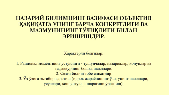 Барча илм-фан, барча инсоний билимлар мақсадга эришишга қаратилган воқеликни аниқ акс эттирувчи ҳақиқий билим.