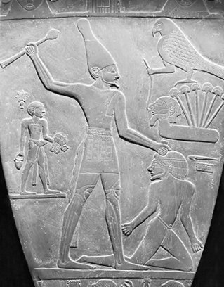 Изображение Нармера, бьющего врага, на Палетке Нармера. XXX век до н. э.