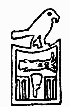 Фрагмент подписи Нармера на алебастровом сосуде из Абидоса.