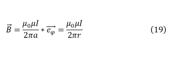 However, all these parameters were given only for a general view, but if we turn to specific examples, then first of all it is worth giving a definition of the magnetic induction vector of a straight wire with a known current and a known distance from it is determined by (19).