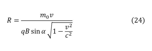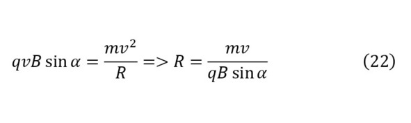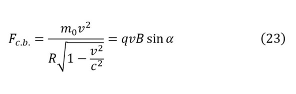 Where thus, if a free charge enters a magnetic field, then it falls under the influence of a magnetic induction force under the action of a certain Lorentz force (20), under the action of which, taking into account the created centrifugal force (21), the charge begins its rotation with a radius (22).