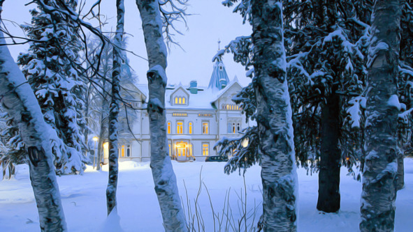 От дороги проходили следы шин, которые вели к одинокому дому среди множества голых деревьев, их ветки были покрыты кромкой инея. И дом этот был необычный, отлично сохранившийся особняк XIX века, у него было четыре этажа, в бок уходили два жилых крыла, которые походили на мощные башни.