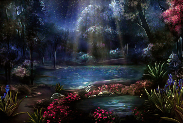 Часть прекраснейшего сада в ночное время, где герои любили проводить время