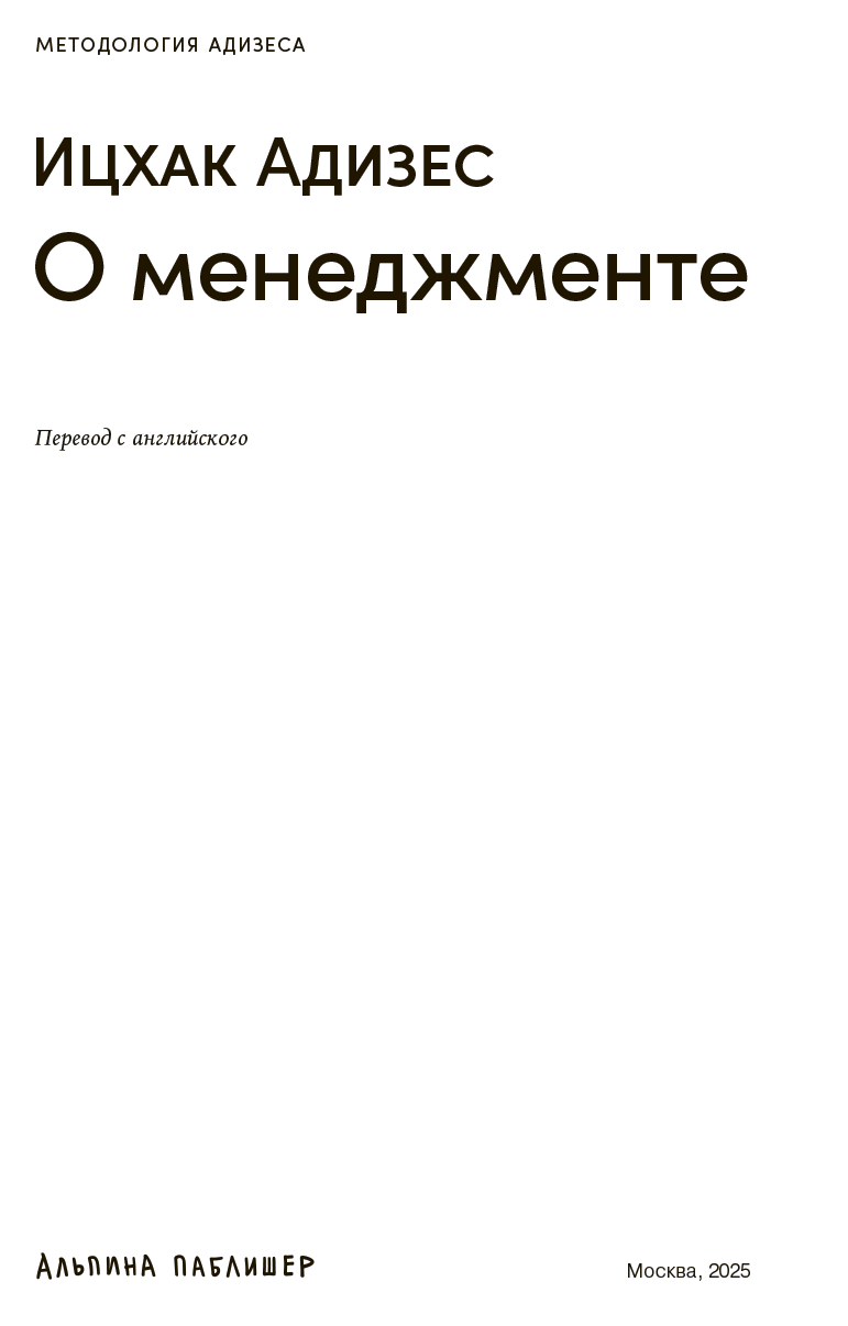 Наконец, несколько замечаний об Институте Адизеса, который я возглавляю и на сайте которого соответствующие посты появляются в первую очередь. Как я уже отмечал в самом начале, эти публикации не являются непосредственными результатами исследований и теорий. Я называю их попутными размышлениями – следствием наблюдений, которые мне позволяет делать моя профессия.