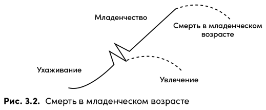 Здоровое Младенчество обеспечивается благодаря балансу роста и наличия денежных средств. Основатели здоровых компаний-младенцев ощущают свою способность контролировать операции. Они имеют поддержку в семье, и ни один из повседневных кризисов не является смертельно опасным. Основатели работают по многу часов в день, отказываются делегировать полномочия, единолично принимают все решения и испытывают от этого удовольствие. Смерть организации-младенца наступает тогда, когда основатель страдает от скуки, когда он испытывает отвращение к своему детищу или теряет контроль над ним. Смерть наступает также тогда, когда компания несет невосполнимые утраты ликвидности (рис. 3.2).