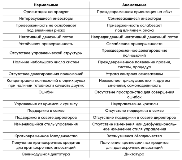Консультанты, жены и прочие наблюдатели часто критикуют много и упорно работающих основателей организаций-младенцев за их своеволие и нежелание делиться своими полномочиями. Но такое поведение типично для владельцев зарождающихся компаний. Чтобы компания доросла до этапа Младенчества, ее основатель должен проявлять энтузиазм и противиться любому вмешательству в свои дела. Подобное поведение является обязательным. Видели ли вы когда-нибудь фильмы о животном мире? Все звери и птицы всегда защищают своих детенышей и не позволяют приближаться к ним кому-либо. Подобно всем живым существам, основатели также встают на защиту своих компаний-младенцев. Они не передают никому своих полномочий. Они настаивают на сохранении театра одного актера с централизованной, авторитарной схемой управления. Согласно моей теории, эта проблема является нормальной на типичном пути (аномальной на оптимальном пути), и она должна исчезнуть, как только организация выйдет из состояния Младенчества. Проблема будет аномальной и может стать патологической, если сохранится и после того, как организация перейдет на следующий этап своего жизненного цикла.