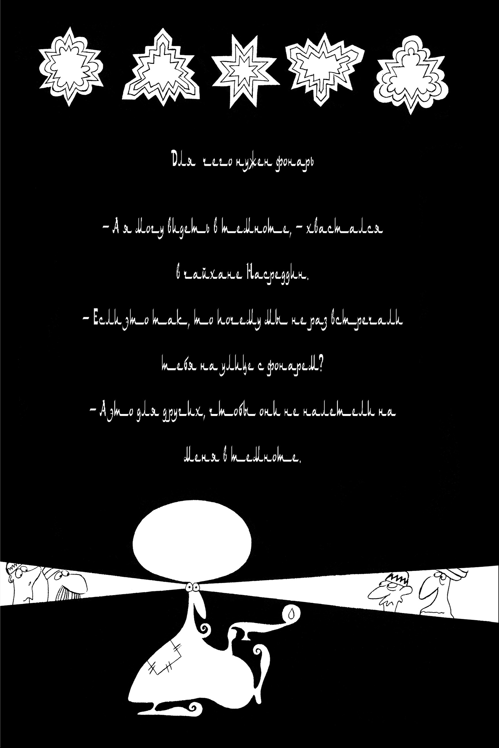 – А я могу видеть в темноте, – хвастался в чайхане Насреддин.