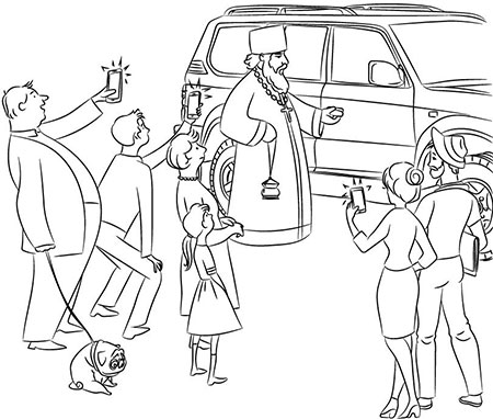 И вот после службы и трапезы выхожу я к своему «Рекстону», снимаю рясу и клобук, собираюсь садиться за руль. А в ворота монастыря в это время входит группа мальчиков и девочек лет 20, один из которых увлеченно рассказывает прочим историю обители. Все собираются фотографироваться.
