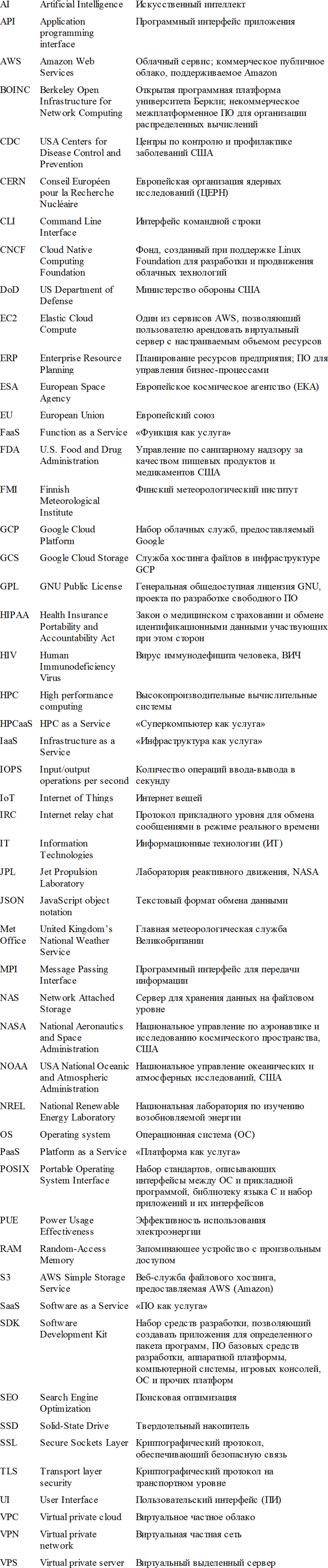В этой книге мы попытались дать общее представление о современном состоянии облачных вычислений. Текст может послужить вводным курсом для выпускников, студентов магистратуры и аспирантов, обучающихся любым дисциплинам: он даст представление о потенциальных возможностях использования облачных технологий и о том, как они могут помочь в разработке проектов и будущей работе.