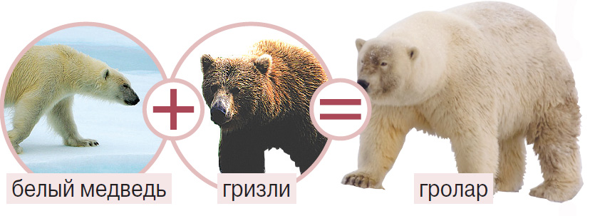 Так, белый медведь (Ursus maritimus – Медведь морской) и бурый медведь (Ursus arctos) относятся к разным видам. Они имеют по 74 хромосомы, скрещиваются между собой и дают плодовитое потомство.
