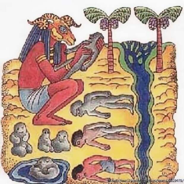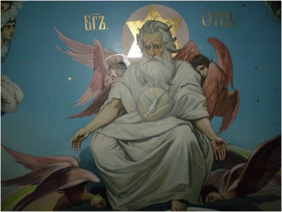 В иудаизме и христианстве Бог представлен, как антропоморфный (человекообразный) «Сущий» (Исход 3:14), восседающий на небесной тверди над плоской Землей, расположенной в водах океана. У язычников это Сварог – верховный Бог.