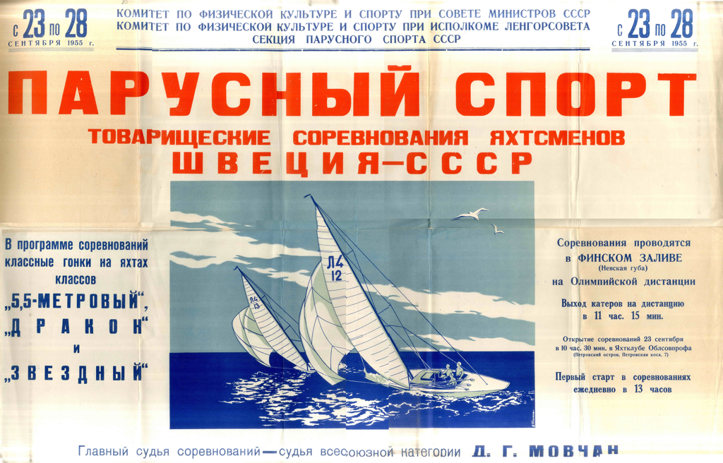 В августе 1955 года, гуляя по Ленинграду со своими двумя приятелями, я увидел афишу о первой в истории нашего города матчевой встрече в гонках на яхтах олимпийских классов со шведскими яхтсменами. К той же афише было прикреплено объявление, что производится запись желающих в детскую спортивную парусную школу (ДСПШ) яхт-клуба Облсовпрофа.