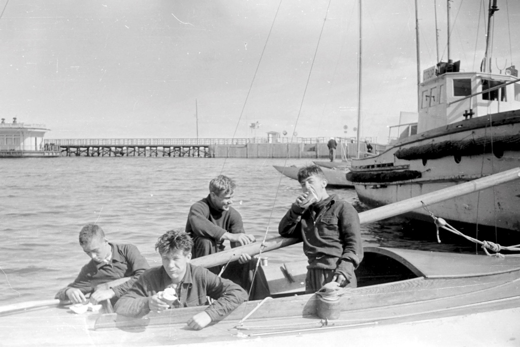 В детской школе у нас было два отряда: отряд килевых яхт, возглавляемый моим любимым тренером мастером спорта СССР Геннадием Семеновичем Назаровым и швертботный отряд, возглавляемый мастером спорта СССР Евгенией Сергеевной Пылковой, первой в СССР женщиной, получившей это высокое звание по парусному спорту еще до войны.