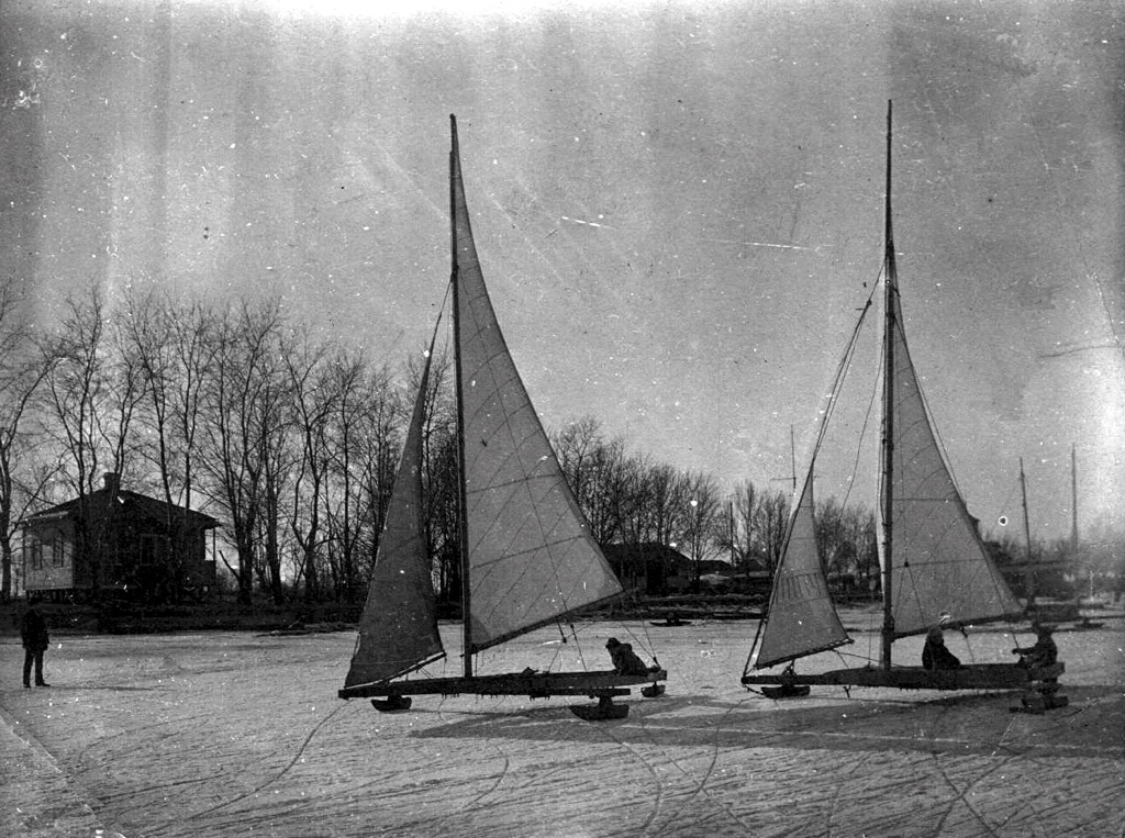В качестве практических занятий зимой нас знакомили с буерами, и мы на них ходили пассажирами, а потом и в качестве матросов (шкотовых). Буера, на которых нас катали, а затем и обучали, были довольно внушительных размеров. Они назывались «площадками» или, жаргонно, «телегами».