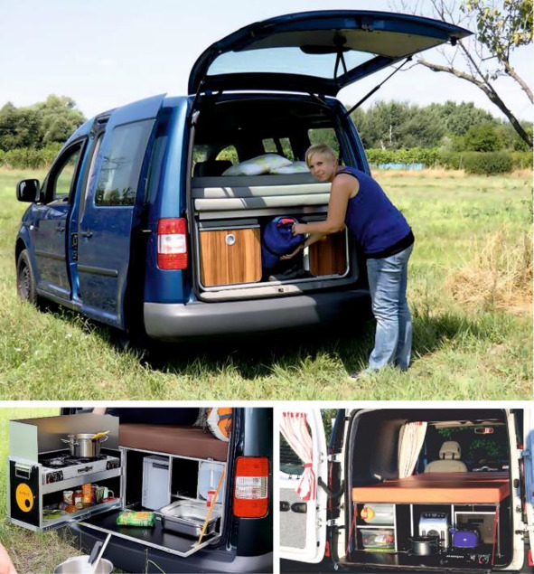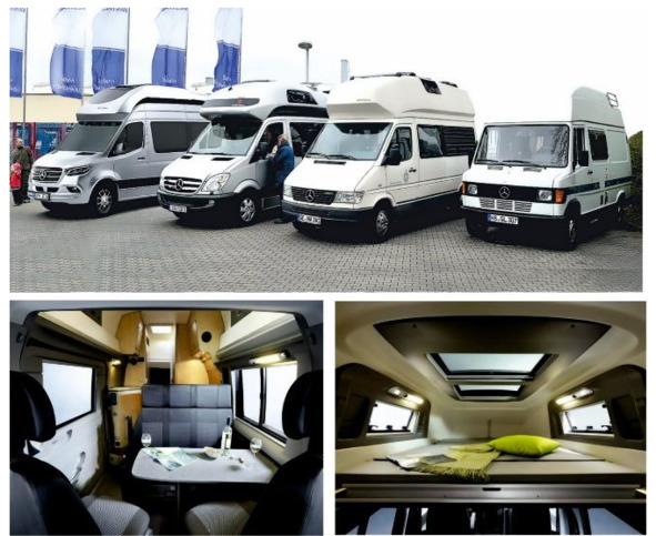 Рисунок 1.10. Поколение автодомов на базе минивэна «Volkswagen». Внизу: одна из модификаций внутреннего пространства.