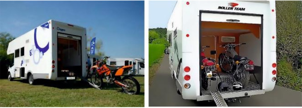 Рисунок 1.14. Полу интегрированный автодом с большим гаражом французского производства. Итальянский дом на колесах для перевозки двух мотоциклов.