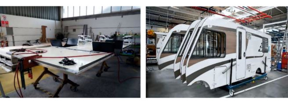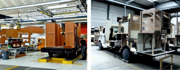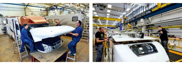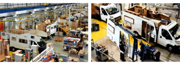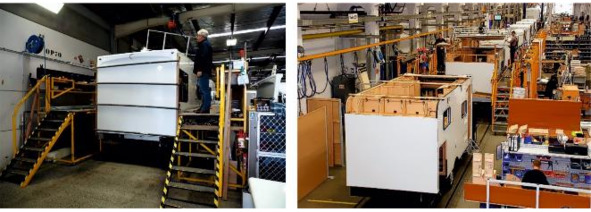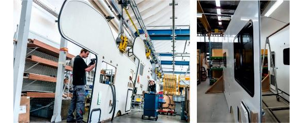 Рисунок 3.15. Слева монтаж стен на заводе бренда «Hymer Group» – «Carado», справа установка стен производства «Hobby».