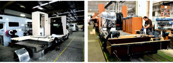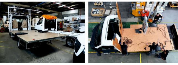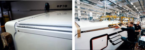 Рисунок 3.18. Завершающие этапы постройки без альковного автодома: слева установка аэродинамического обвеса «Hymer». Справа: монтаж крыши жилого дома «Corado».