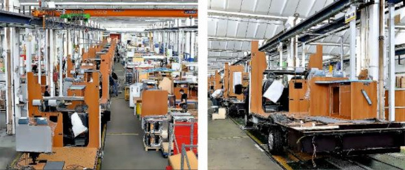 Рисунок 3.11. Слева конвейер автодомов (общий план). Справа: конвейер крупным планом.