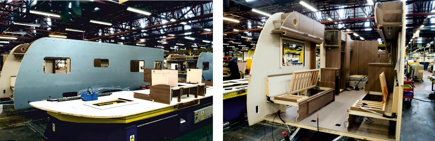 Следует сказать, что современные производители собирают жилые прицепы уже из готовых сэндвич панелей, которые поставляются с других предприятий, специализирующихся на их изготовлении. Так же, на сборочный завод, поступают и другие комплектующие от сторонних производителей. Это могут быть окна, двери, люки, оптика, кухонное и сантехническое оборудование, системы отопления и прочее. Так же на производство караванов поступают отдельно лонжероны шасси, комплекты тормозов – наката, колеса и.т.д.