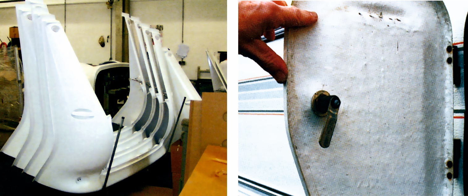 Рисунок 3.9. Слева – передний фартук прицепа из ABS-пластика. Справа – сервисная дверь каравана, сделанная из стеклопластика.