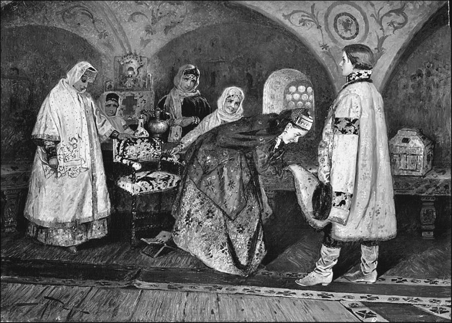Первая встреча царя Алексея Михайловича с боярыней Марией Милославской. Художник М.В. Нестеров