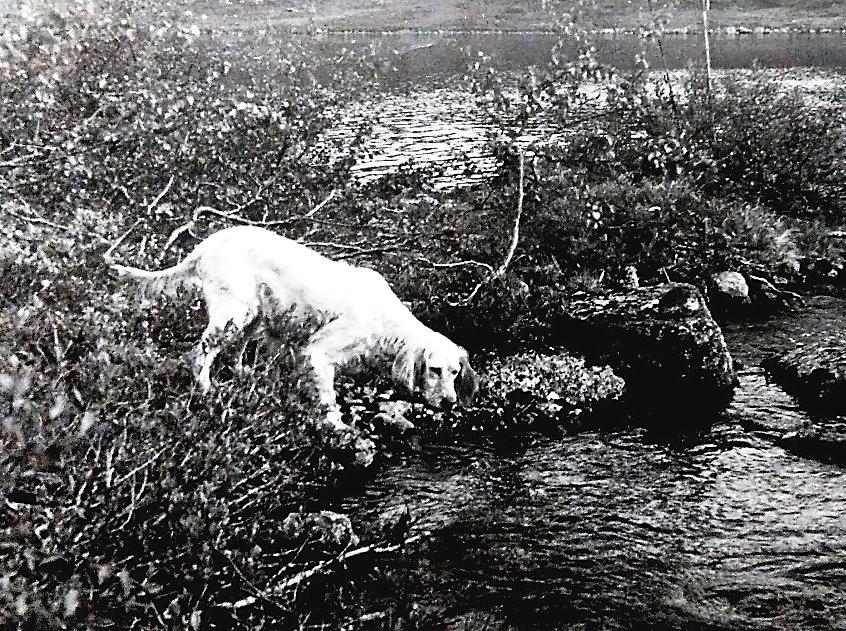 Около восьми утра. Спускаемся вниз, к первому продолговатому озерцу с крутым берегом, покрытым черничником и густым березняком. Вега, неспешно идущая впереди, вдруг настораживается, резко поворачивает вверх по склону, делает несколько шагов и… замирает на стойке. Стойка у неё получается «крутая», под углом более сорока пяти градусов. Выводок куропаток дружно срывается из-за низких берёз и тут же скрывается за склоном. Слышу быстрый дуплет Олега, идущего выше. Успеваю выстрелить почти навскидку, едва поведя стволами по чуть отставшей птице, уверенный, что мажу. Однако куропатка падает, убитая наповал двумя-тремя дробинами. Птица молодая, небольшая, зоб набит ягодами и веточками черники. Оперение начинает меняться на зимнее: много белых перьев, особенно на брюшке. Что же при этом делает Вега? А она совершенно спокойна, как будто совершает обычную работу: остаётся на месте после выстрела, а когда куропатка падает, подбегает к ней, садится рядом и… улыбается! Когда я подхожу и беру птицу в руки, Вега тут же идёт в поиск. Вот это работа! Олегу тоже удаётся сбить одну птицу. Он подходит, радостно произнося: «С полем, дружище!» Это первая наша дичь, взятая из-под легавой собаки на правильной охоте!