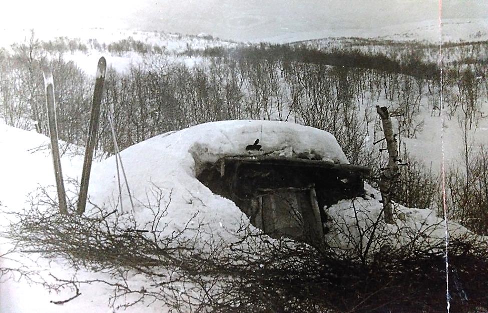 Землянка на Третьем Южном Кылпе зимой. Ни души, только мои лыжи слева отдыхают…