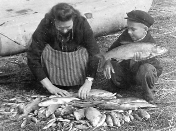 Итоги рыбалки на Куршском заливе в 1950-е годы. Справа – я с жерехом