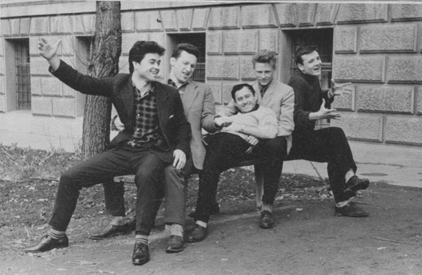 Квинтет. Конец летней сессии 1963 г. Библиотека РГУ. Слева направо: Станислав Зинченко (доктор юридических наук, Ростов-н/Д), Женя Шимширт (сотрудник милиции, Луганская область УССР), Гена Лозовой (следователь прокуратуры, Туапсе), Володя Федоренко (адвокат, Ростов-н/Д), Женя Ляхов (доктор юридических наук, Москва). Фото автора