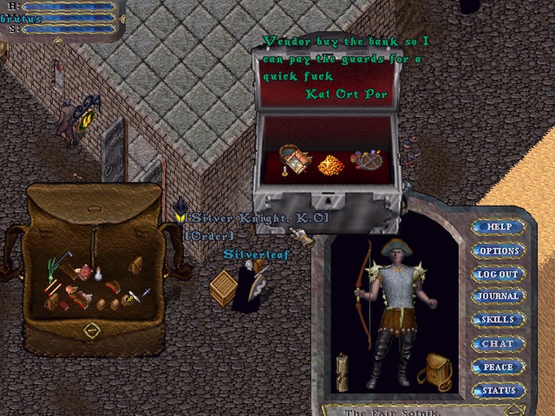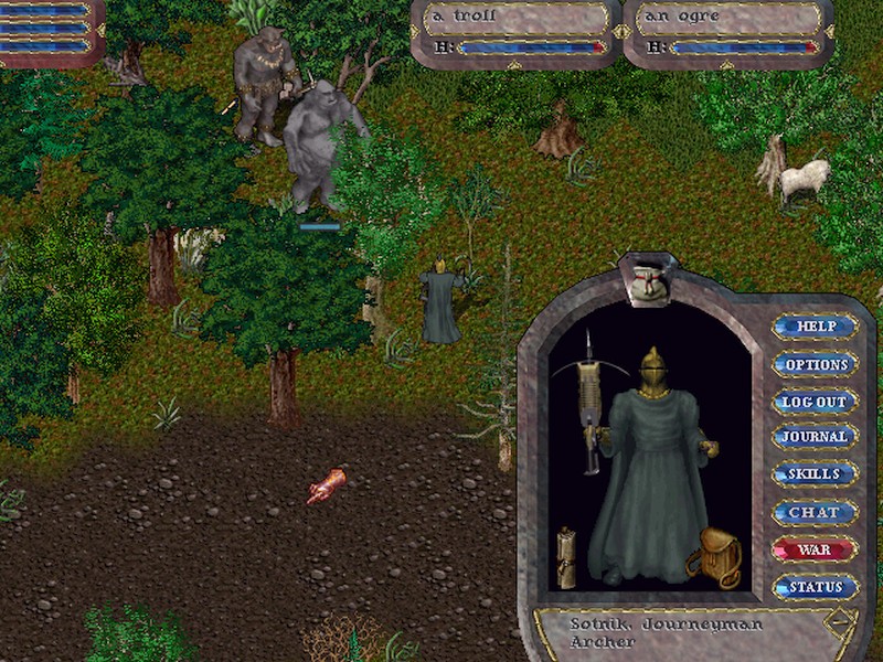 In the end, I settled on Pacific, which was the server I had the least lag. And the connection speed with the 14,400 modem wasn't great. In the game any character could outrun me (if he had time, of course), I was just a little bit slower. But these were the little things in life, the very virtual life in a fairy-tale world, where the struggle between good and evil was in the first place. I realized this a bit later, but on the first day I was happy about the most trivial things. For example, that a bird shot with a bow could be gutted, and you can obtain the meat and feathers that can be used to make arrows.