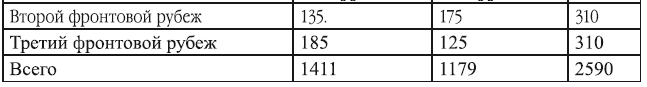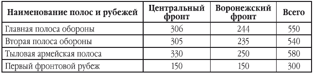 Протяженность оборонительных полос и рубежей Центрального и Воронежского фронтов (км)