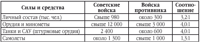 В ожесточенное столкновение, развернувшееся на довольно ограниченной территории, с обеих сторон были вовлечены огромные массы войск и военной техники: более 4 млн человек, почти 70 тыс. орудий и минометов, до 13 тыс. танков и самоходных артиллерийских установок (САУ), свыше 11 тыс. боевых самолетов.