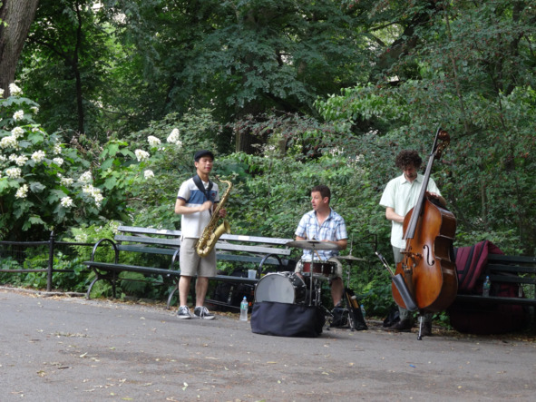 Идешь себе по аллеям, глязея на мексиканских нянечек со своими малолетними подопечными, встречаешь не менее мексиканских или афроамериканских выгульщиков собак (выгуливают обычно целые своры разнокалиберных друзей человека), а тут бац – трио молодых музыкантов играют джаз. Приятно и настроение создают такое… американское.