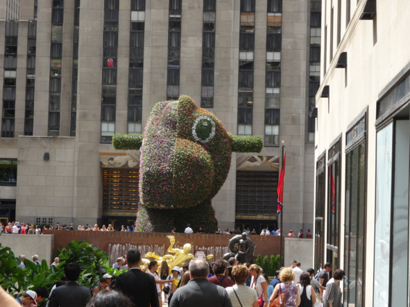 Брели мы себе дальше по ньюйоркским улицам. Глазели на модные магазины, небоскребы и прочие объекты малых архитектурных форм. Много чего можно увидеть на этих стритах-авеню. Так и дошли до знаменитого Рокфеллер центра. Знаменитое оно тем, что на самой его верхотуре расположена одна из смотровых площадок.
