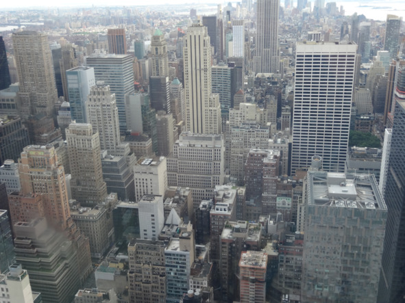 С высоты Рокфеллер-центра Нью Йорк, как на ладони. Небоскребищи всякие разные и по форме, и по названиям, и по содержаниям тоже. Где просто офисы, где гостиница, где еще какая развлекательная или общепитовская зараза.