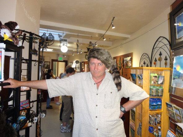 Следующей остановкой стала смотровая площадка. Это утес над рекой, которая в этих местах стиснута каменистыми берегами. Ветрище разгоняется в этом каньоне до неимоверной силы и буквально сдувает с площадки. Но вид хороший. Здесь же пишут свои акварели местные художники. На самой площадке установлено круглое строение с еще одной смотровой площадкой на крыше и музеем-магазином внутри. В магазинчике тебе предложат туристическую дребедень, фотографии индейцев, когда-то живших в этих местах и несколько видов нарядов, в том числе и шапка зверобоя, причем из искусственного меха, наверное, чтобы не дразнить экологов. Но это все были промежуточные остановки.