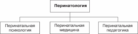 Как у нас, так и за рубежом в процессе решения теоретических и практических задач перинатологии, зародившейся и представляющей собой область медицины, в настоящее время естественным путем оформились три больших раздела: собственно перинатальная медицина, перинатальная психология, перинатальная педагогика (рис. 1).