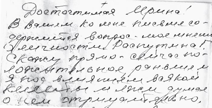 Когда по благословению старца, схиигумена Иеронима (Верендякина) была издана моя книжка «Оклеветанный старец», то меня стали постигать большие искушения. Да такие, что жена Ирина всполошилась и решила, что всё из-за того, что я написал эту книгу. И тогда моя благоверная и написала письмо старцу Кириллу (Павлову). Спросила его, как он относится к Григорию Распутину.