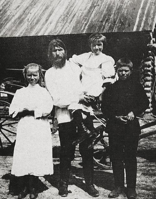 Григорий Ефимович со своими детьми Матреной, Варварой и Дмитрием