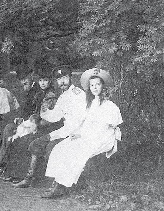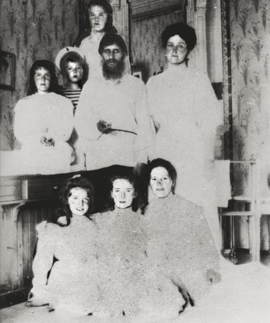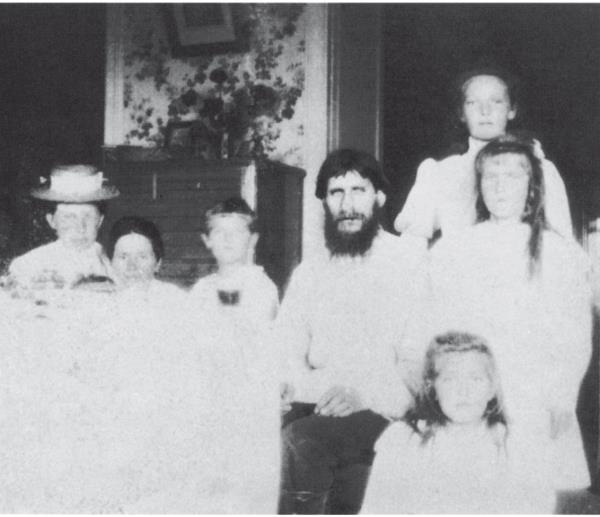 Старец Григорий с Царицей Александрой, царскими детьми и гувернанткой