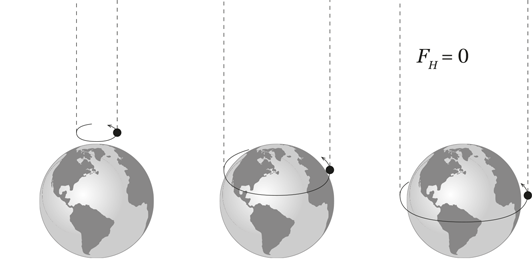Рис. 3. Переход от колебания бесконечно длинного маятника к вращению вокруг Земли