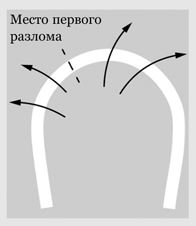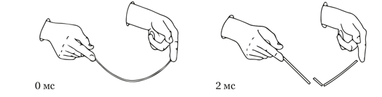 Рис. 2. Сразу после первого разлома две неравные части спагеттины начинают выпрямляться, каждая в свою сторону