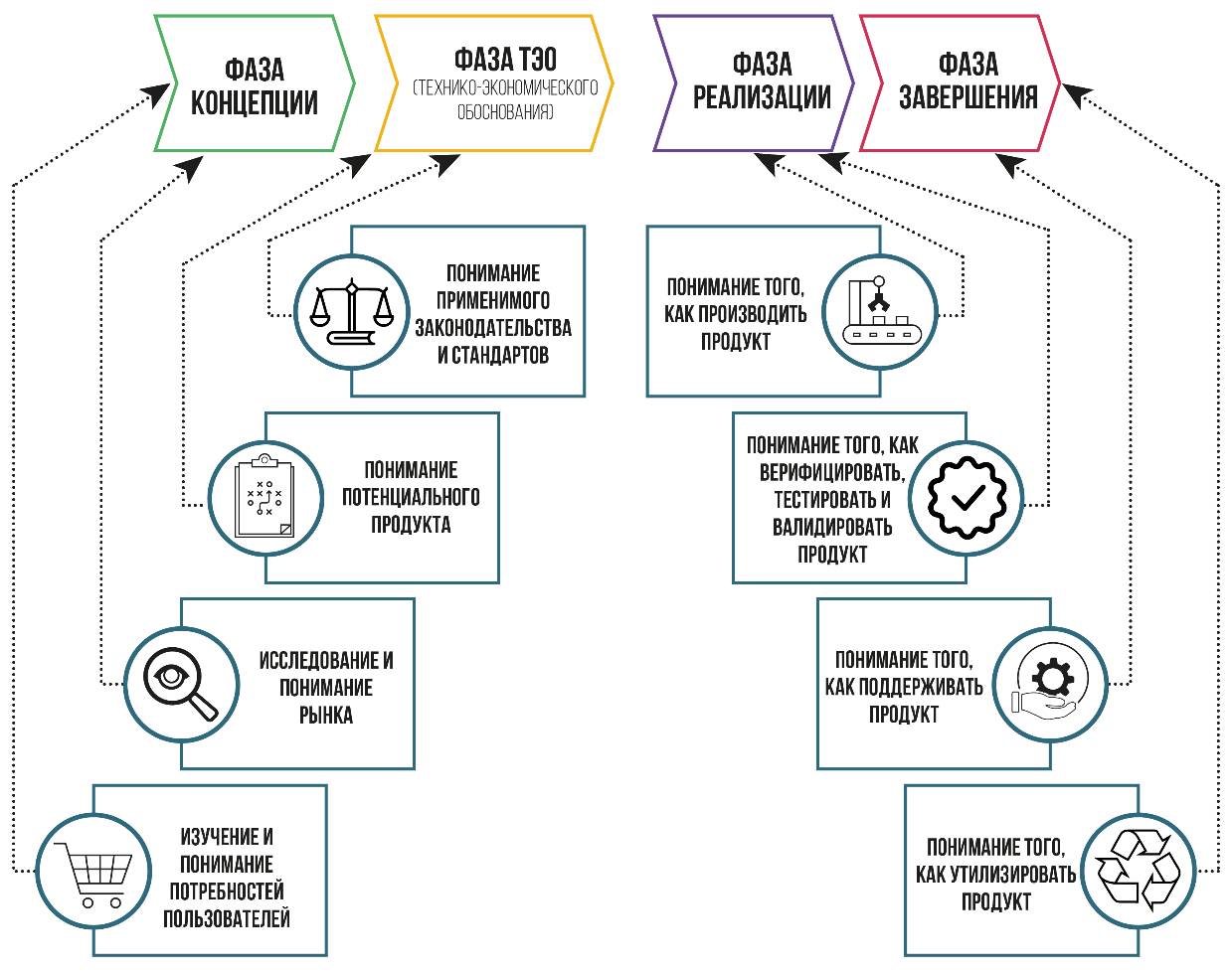 Только после того, как все требования к новому изделию будут поняты, можно рассмотреть, как обеспечить безопасное использование изделия и его качество. Таким образом, разработка спецификации предшествует обеспечению безопасности, качества и надежности.