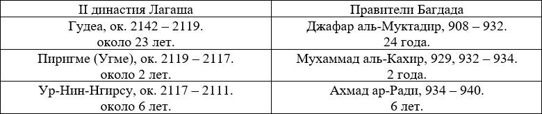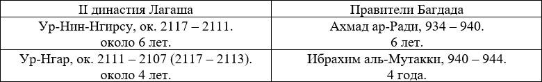 ВЫВОД: Переход власти от II династии Лагаша к III династии Ура соответствует переходу власти в Ираке от Аббасидов к Буидам (Бувайхидам).
