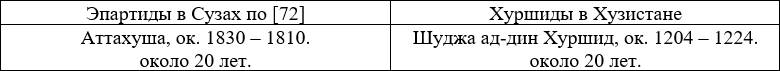 Таким образом, соответствие для царей Элама из династии Симашки, по-видимому, должно выглядеть так: