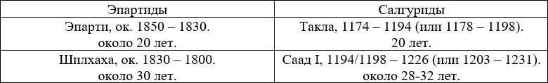 Как мы уже упоминали в предыдущих книгах трилогии Новая хронология Древнего мира, понятие Аншана соответствует понятию Фарса, а Сузиана – Хузистану. Исходя из подобного отождествления приход новой династии к власти в этом регионе в рассматриваемое нами время может соответствовать следующим событиям: «Родоначальник Салгуридов, Сонкур, воспользовался войнами и распрями, происходившими в правление сельджукского султана Масуда, чтобы захватить Фарс и создать здесь в 1148 г. свое независимое государство. После Сонкура, в 1161 г., власть перешла к его брату Занги. Он был побежден Ильдегизидами и принес присягу султану Арслану, который оставил за ним управление Фарсом. В 1175 г. Занги наследовал его старший сын Дакла, остававшийся данником Сельджуков. После его смерти, в 1194 г. престол перешел к его двоюродному брату Тогрылу, а в 1203 г. его захватил младший брат Даклы, Сад I. В годы его правление Фарс достиг значительного процветания и могущества» [58].