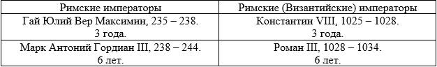 Так как по римской хронологии 228 г. соответствует 1028 году, то провозглашение Гордиана III императором в АПРЕЛЕ 238/1028 г. совпадает с коронацией Генриха III: «В пасхальное воскресенье 14 АПРЕЛЯ 1028 года в Ахене состоялась королевская коронация Генриха Пильгримом Кельнским. Так был разрешен вопрос о наследовании» [100].