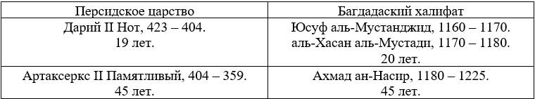 – «Артаксеркс II – старший сын Дария II и царицы Парисатиды. До вступления на престол носил имя Арсак (Дион называет его Оарс). Из-за исключительной памяти греки прозвали его «Памятливый» (Мнемон). Артаксеркс умер в декабре 359 года до н. э. в возрасте 86 лет. Правил он 45 лет» (ru.wikipedia.org/wiki/Артаксеркс_II).