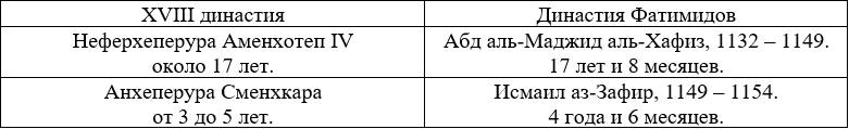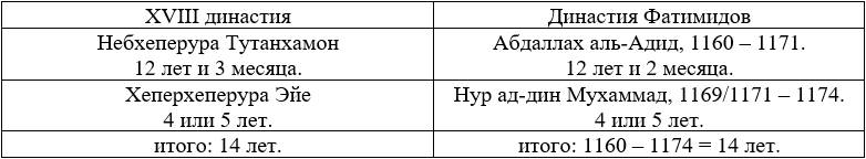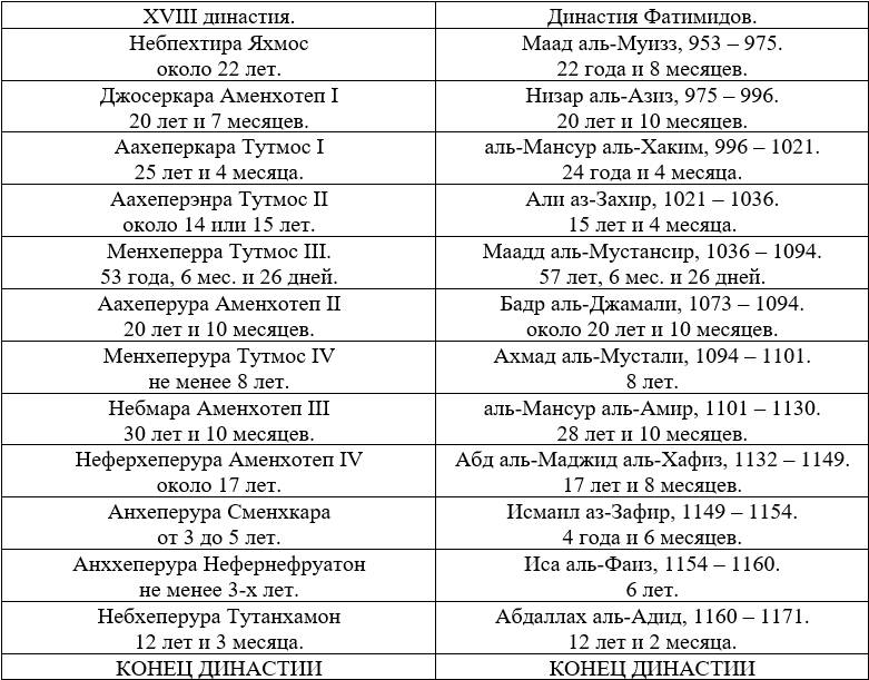 Следовательно, мы можем предположить, что гибель XVIII династии соответствует гибели династии Фатимидов.